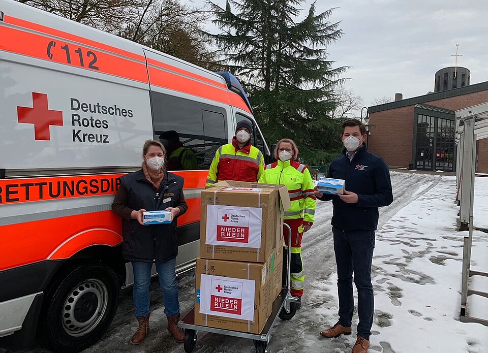 „Gerade in diesen Zeiten ist die Arbeit der Tafel sehr wichtig. Dort kennt man die Menschen, die jetzt Hilfe benötigen und kann die Masken bestens verteilen“, erläutert Andreas Bußmann, Vorstands-Vorsitzender des DRK Kreisverbands Niederrhein, die Spende.
