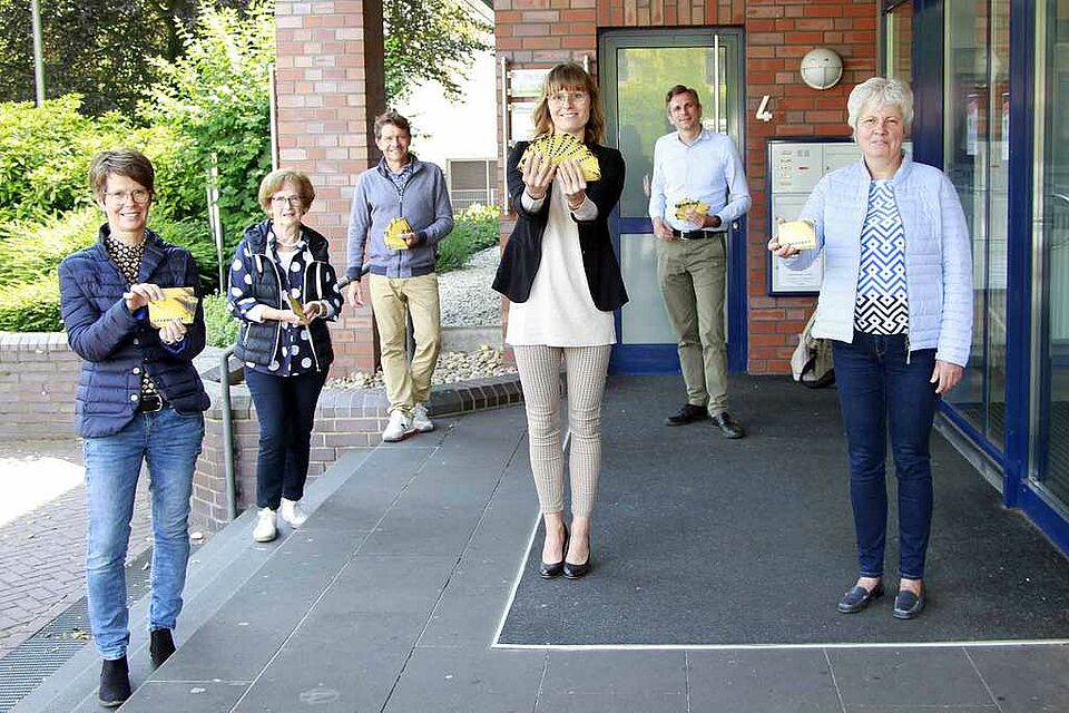 Melanie Mehre, Geschäftsstellenleiterin der Volksbank in Xanten überreichte diese an die Organisatorinnen im Ortsverein Xanten Elisabeth Dercks, Veronika Bauhuis und Birgit Düpont. Bei der Blutspende in Xanten am 15. Juni erhalten die ersten 150 Blutspender die Gutscheine als Extra-Dankeschön.