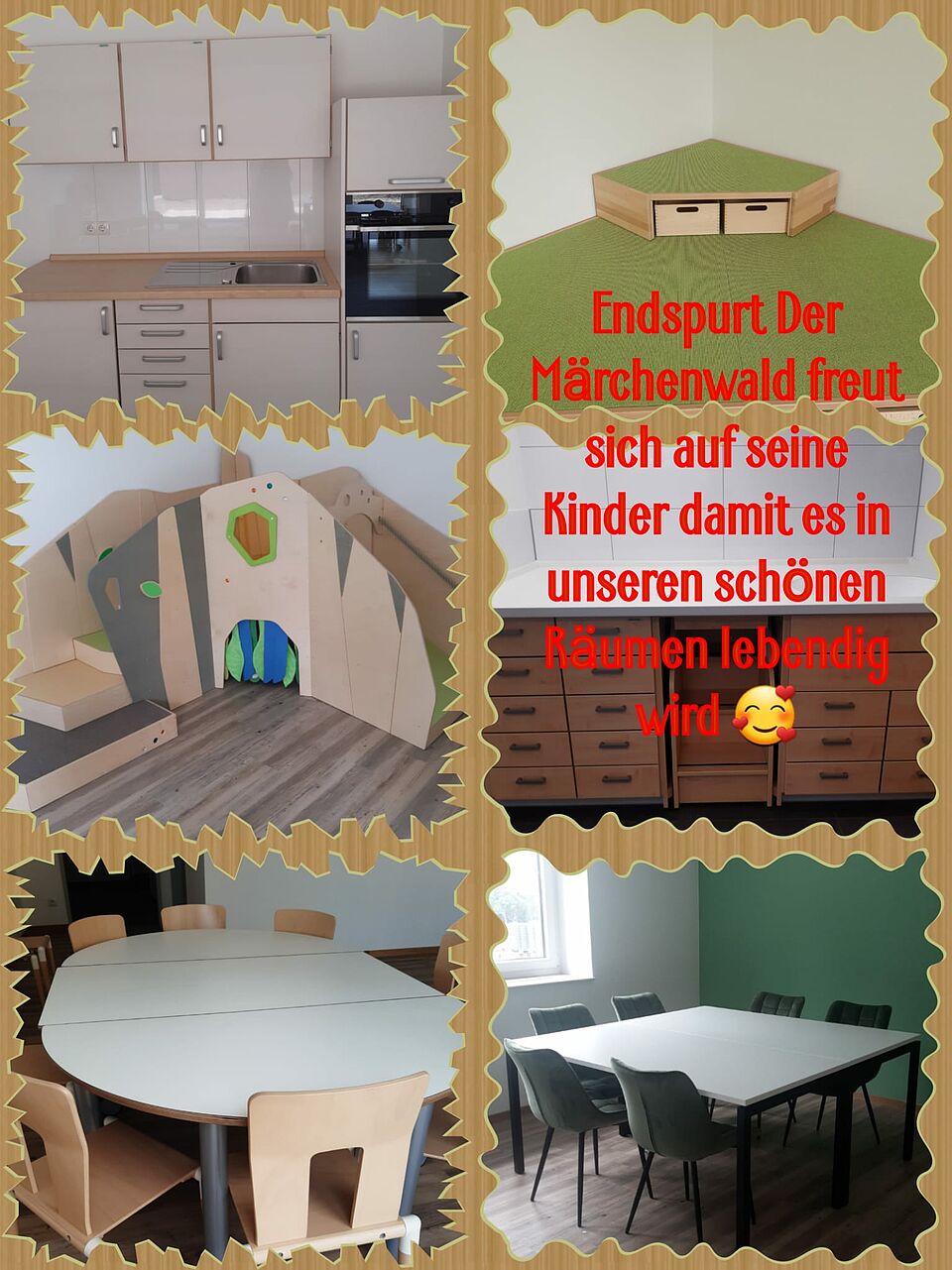 In den Außenanlagen wird der Parkplatz mit dem Wendekreis angelegt und in der nächsten Woche der Zaun gesetzt. In der 2. Juli Woche sind die Kita Möbel aufgebaut worden und warten nun auf die Kinder, die ab dem 08.08.2022 den Märchenwald besuchen .