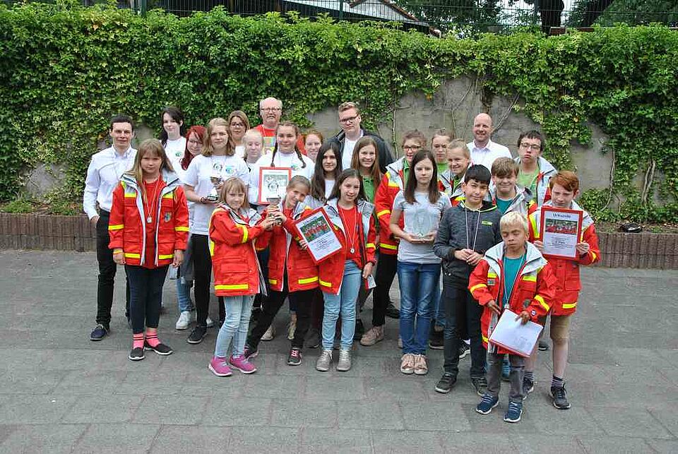 In der Gruppe der 6 bis 12-Jährigen siegte die JRK-Gruppe 2 aus Alpen vor ihrer Schwestergruppe 1. Dritte wurde die JRK-Gruppe aus Sonsbeck, Vierte Wesel. Bei den 13 bis 16-Jährigen kam die Gruppe des JRK-Orsoy auf Platz eins vor Wesel und Alpen. Bei den 17 bis 27-Jährigen, zu denen auch die Schul-Sanitäts-Dienst(SSD)-Gruppen gehören, siegte der SSD der Gesamtschule Schermbeck vor denen des Stiftsgymnasiums Xanten. Dritte wurde die JRK-Gruppe Alpen.