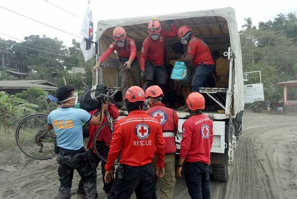 Seit Tagen spuckt der Vulkan Taal auf den Philippinen kilometerhohe Aschewolken. Er könnte jederzeit mit einer gewaltigen Eruption ausbrechen und einen Teil der umliegenden dicht besiedelten Provinz Batangas verwüsten. Nach wie vor gilt die zweithöchste Warnstufe. Tausende Menschen mussten bereits ihre Häuser verlassen, in den über 120 Evakuierungszentren werden mehr als 25.000 Personen versorgt. 222 Helferinnen und Helfer des Philippinischen Roten Kreuzes (PRC) sind im Einsatz, darunter auch viele Ehrenamtliche. Sie haben unter anderem 1.750 Personen in den Evakuierungszentren mit warmen Mahlzeiten versorgt, drei Wassertanks mit sauberem Wasser aufgestellt sowie eine Sanitäranlage errichtet. Zudem sammeln sie Kleiderspenden für die vom Vulkanausbruch Betroffenen und haben schon 5.000 Atemmasken verteilt.