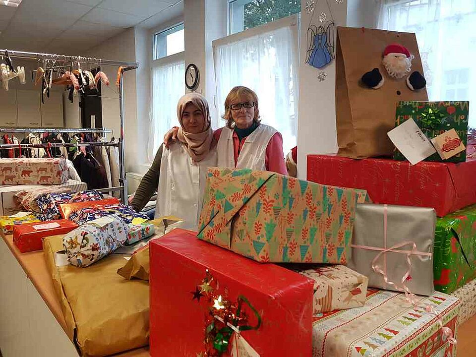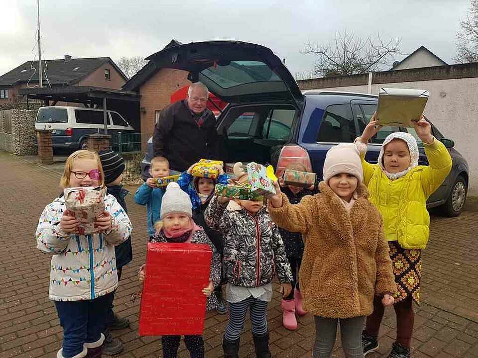 Fleißig wurden mit Unterstützung von Serafin Groth, der Leiterin der Tageseinrichtung, Päckchen mit Geschenken gepackt, ins Auto gebracht und zur Kleiderkammer des Deutschen Roten Kreuzes gefahren. Hier war die Freude groß, denn von dort aus erfolgt die Verteilung der Päckchen in den nächsten Tagen.