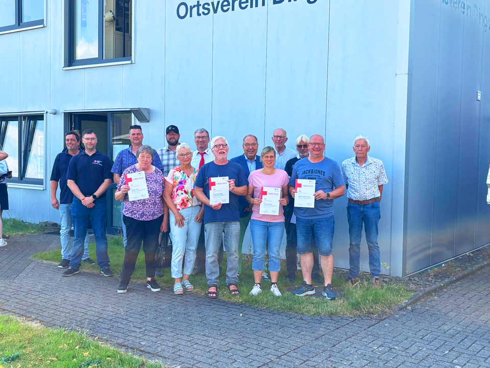 Im Rahmen des „Tags der offenen Tür“ des DRK Ortsvereins Dingden, bei dem parallel auch eine Blutspendeaktion stattfand, wurden 37 engagierte Bürgerinnen und Bürger für ihre langjährige Spendenbereitschaft ausgezeichnet. Vorsitzender Stefan Terörde und Bürgermeister Bernd Romanski überreichten die Urkunden, Ehrennadeln und als besondere Anerkennung jeweils einen Hamminkelner Stadtgutschein.