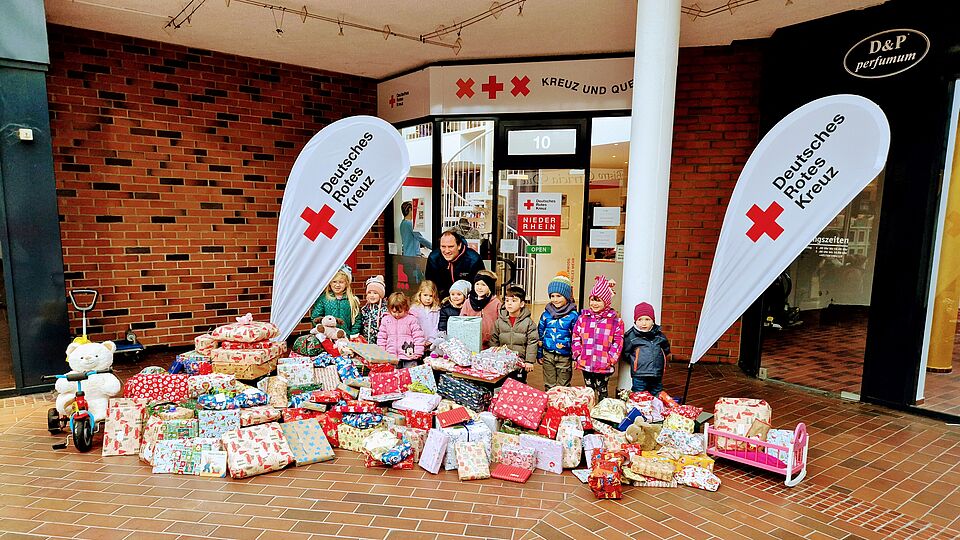 Eine vorweihnachtliche Tradition der DRK-Kita Abenteuerland hat in diesem Jahr einen neuen Höhepunkt erreicht: Gemeinsam mit der DRK-Kita Altes Forstamt sammelten die Kinder so viele Geschenkpakete wie nie zuvor, um sie an den Kleiderladen „Kreuz & Quer“ des DRK Niederrhein in der Apollopassage in Wesel zu übergeben.