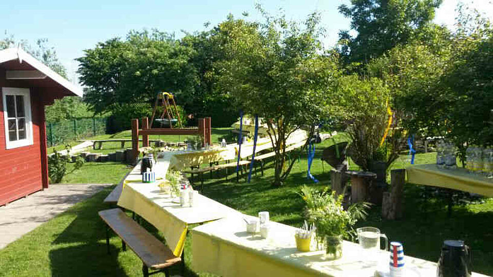 Unser großzügiges, schön gestaltetes Außengelände lässt viel Platz zur freien Bewegung der Kinder. Es bietet Möglichkeiten zum Schaukeln, Klettern und Balancieren.