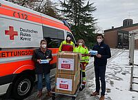 Mit einer umfangreichen Aktion unterstützt der DRK Kreisverband Niederrhein die Arbeit der Rheinberger Tafel und spendete 10.000 Masken für die Menschen, die die Tafel in Anspruch nehmen.
